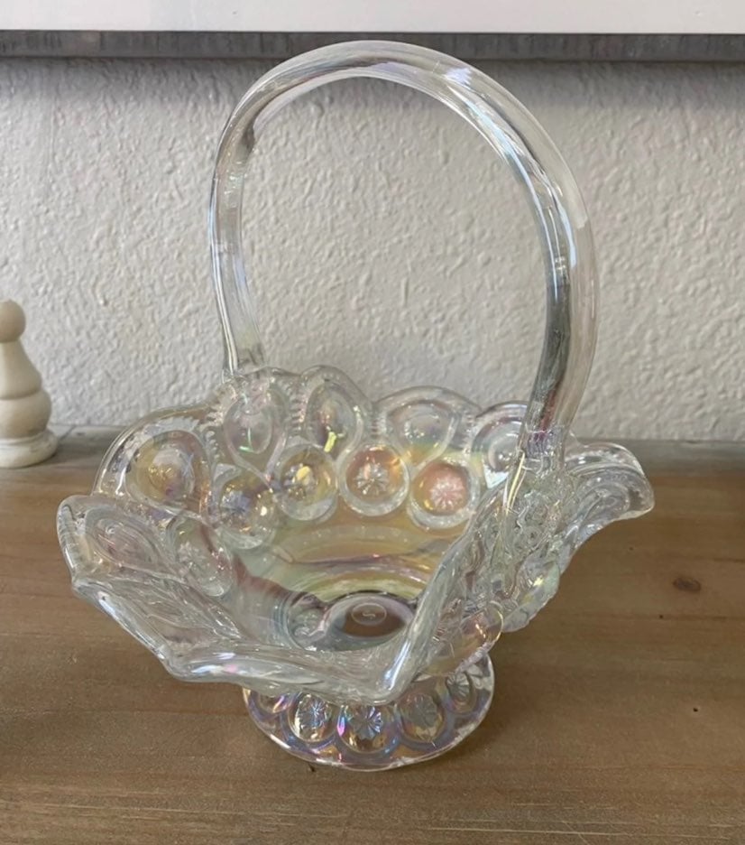 Beautiful moon and star design glass basket in the white carnival crystal color.